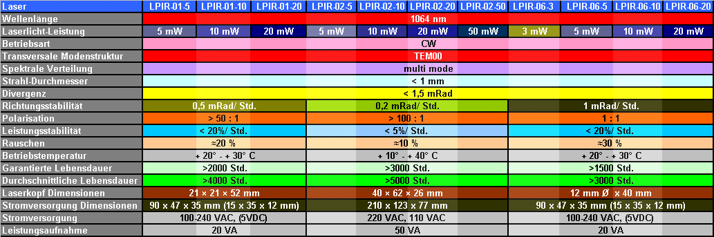 Dauerstrich DPSS Laser LPIR-Serie Spezifikationen