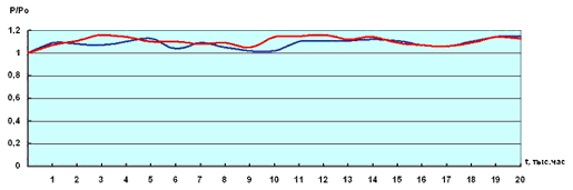 | Typischer Verlauf der Ausgangsleistung über den Zeitverlauf der HeNe-GN-Serie.