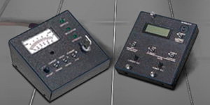 Für Anwendungen bei denen keine externe Steuerung des Laserstroms oder der Lichtleistung zur Verfügung stehen, bieten wir Fernsteuerungen für unsere Schalt-geräte mit limitierter Funktionskontrolle an. Diese Einheiten besitzen eine Anzeige für die momentane Lichtleistung oder den Röhrenstrom. Die Steuerung für PS-9700 und PS-8100 mit analoger Meteranzeige kann über Kabel oder direkt mit der Stromversorgung verbunden werden.