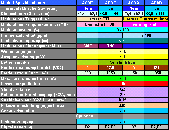 Modulierte Diodenlaser Systeme Zirkularstrahl- Serie Spezifikationen