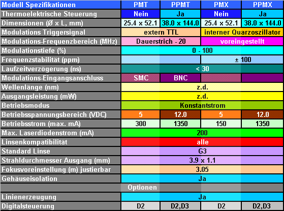 Modulierte Diodenlaser Systeme PM- Serie Spezifikationen