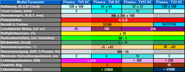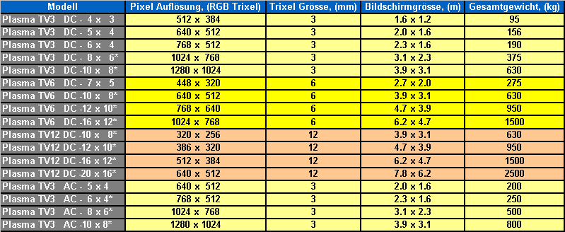 PLASMA-GROSSBILDSCHIRM- Serie Spezifikationen