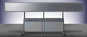 Konstruktionsbedingt sind die Platzerfordernisse für die Flach- Bildschirmpaneele minimiert. Die Plasma-Bildschirme können an Wände oder von Decken gehängt werden oder frei auf Sockeln im öffentlichen Bereich aufgestellt werden.