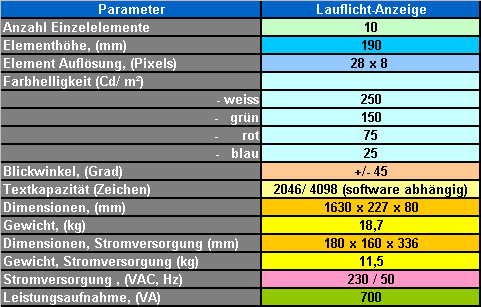 LAUFLICHT-INFORMATIONS-DISPLAY Spezifikationen