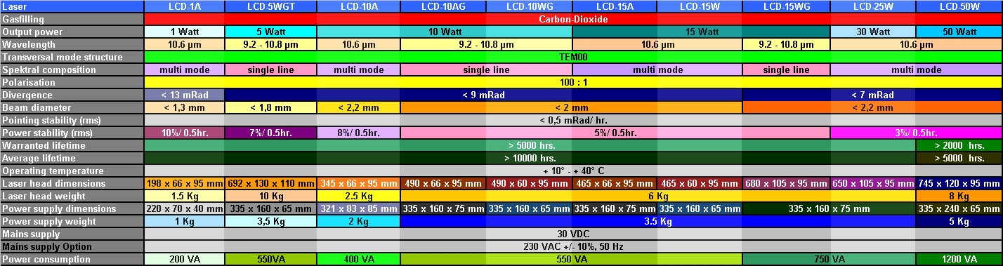 CO2-Laser LCD-Series Specifications