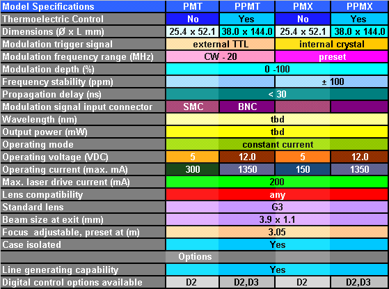 Modulated Diode Laser Modules PM- Series Specifications