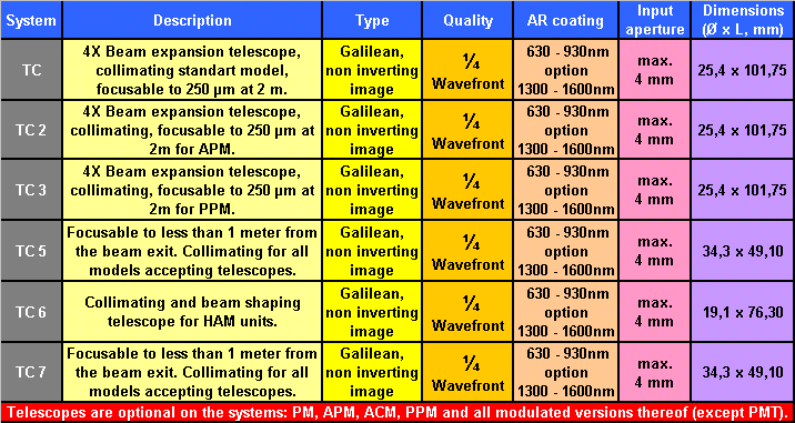 Diode Laser Module Telescope Options Specifications