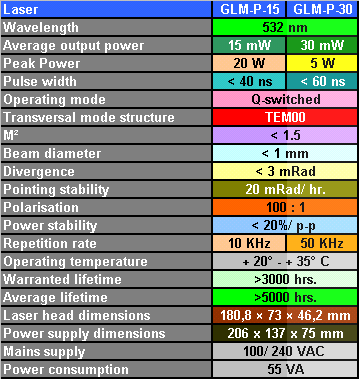 Pulsed-DPSS Laser GLM-P-Series Specifications
