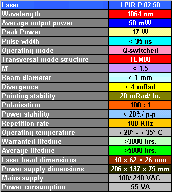 Pulsed-DPSS Laser LPIR-P-Series Specifications