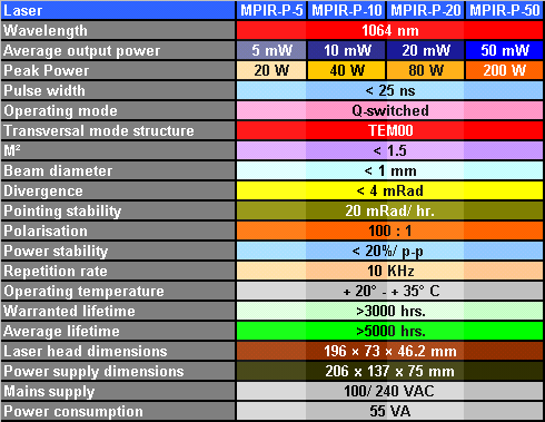 Pulsed-DPSS Laser MPIR-P-Series Specifications